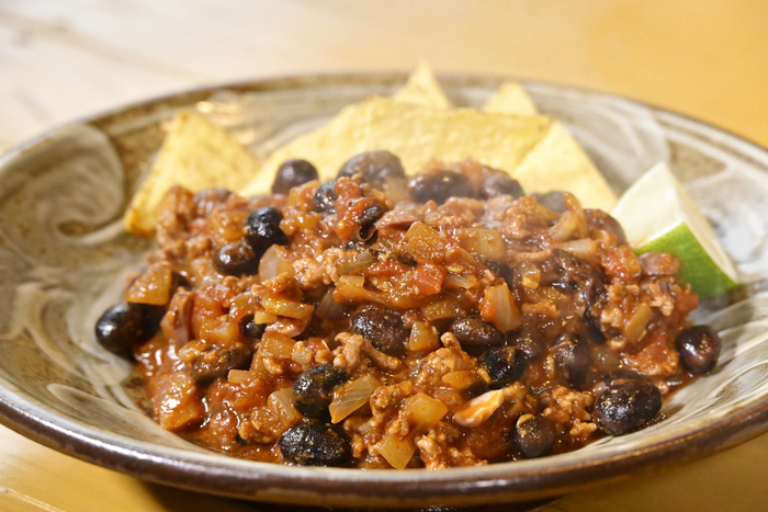 | チリコンカン | 黒大豆たっぷりの煮込み料理。お肉やトマト、スパイスと煮込むことで、豆の旨みが主役に。 |
