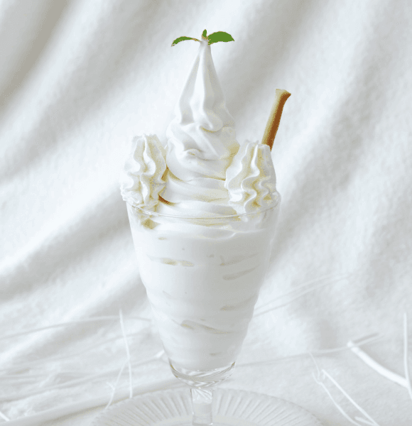 ここで味わえるのが、真っ白なパフェ。北海道産の生乳をたっぷり使い、コクがありながら後味がスッキリとした贅沢な一品。見た目も可愛らしく、SNS映えもバッチリ。
