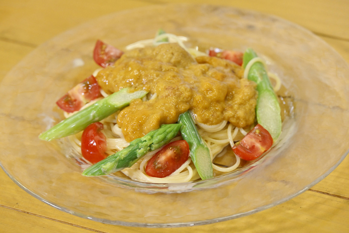 今回の主役!贅沢なほど泊うにを使った冷たいパスタ。