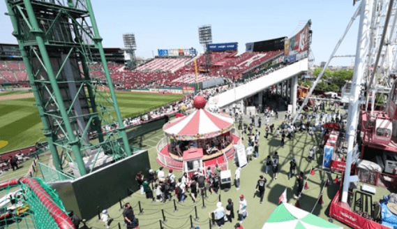 また、子ども向け遊具が充実したスマイルグリコパークが外野後方に併設され、観覧車や滑り台で試合以外の楽しみも提供します。