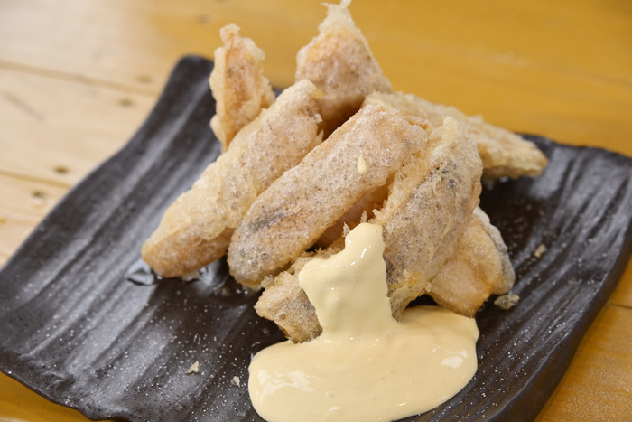 レンコンの新しい可能性を感じさせてくれる揚げ物。外はカリッ、中はホクホク。塩やハーブをまぶせば、お酒のつまみにも最適です。お子様も喜ぶこと間違いなし。