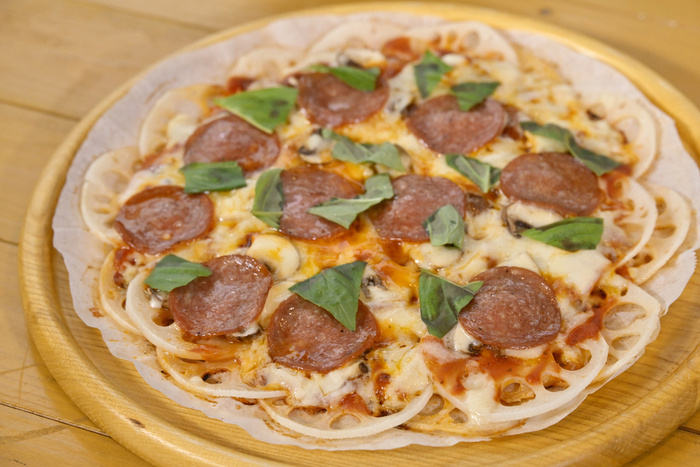 薄くスライスしたレンコンをピザ生地のように敷き詰め、チーズやベーコンなど好みの具材をトッピング。焼き上げると、レンコンの食感とチーズのコクが絶妙なバランスに。グルテンフリーで健康志向の方にもおすすめです。