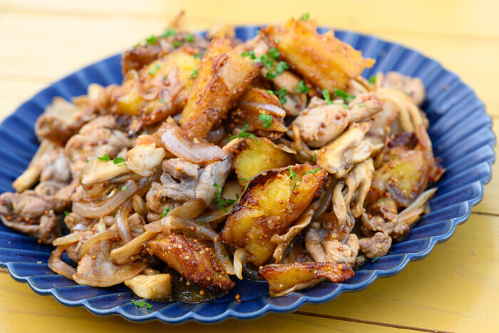 白いさつまいもが美しい琥珀色に変わり、コク深く上品な仕上がり。食卓の副菜や、おしゃれなパーティーメニューにもぴったりです。平さんも「ワインに合いそう!」と盛り上がりました。